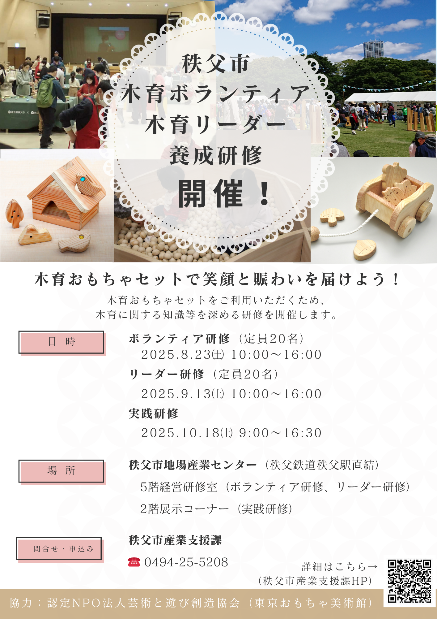 秩父市木育おもちゃセットを活用したイベント等(ただし、利用申請時に公表可のご連絡をいただいたものに限る)をお知らせします。