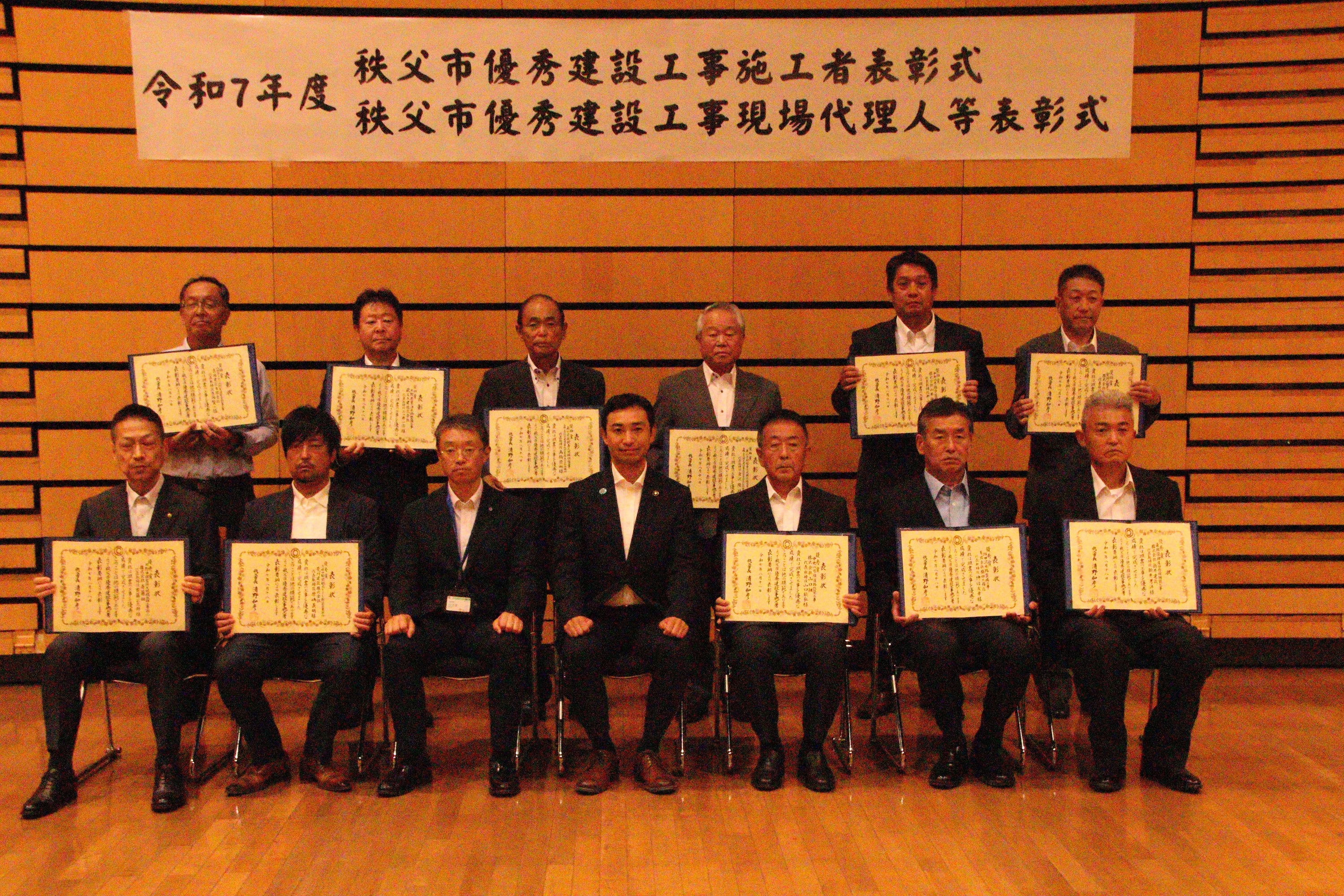 令和7年8月18日(月)に、歴史文化伝承館2階ホールにて「秩父市優秀建設工事施工者及び現場代理人等表彰式」が行われました。