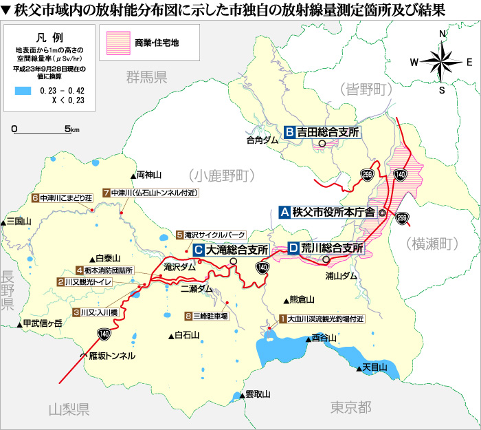 本庁舎および吉田・大滝・荒川総合支所における測定結果