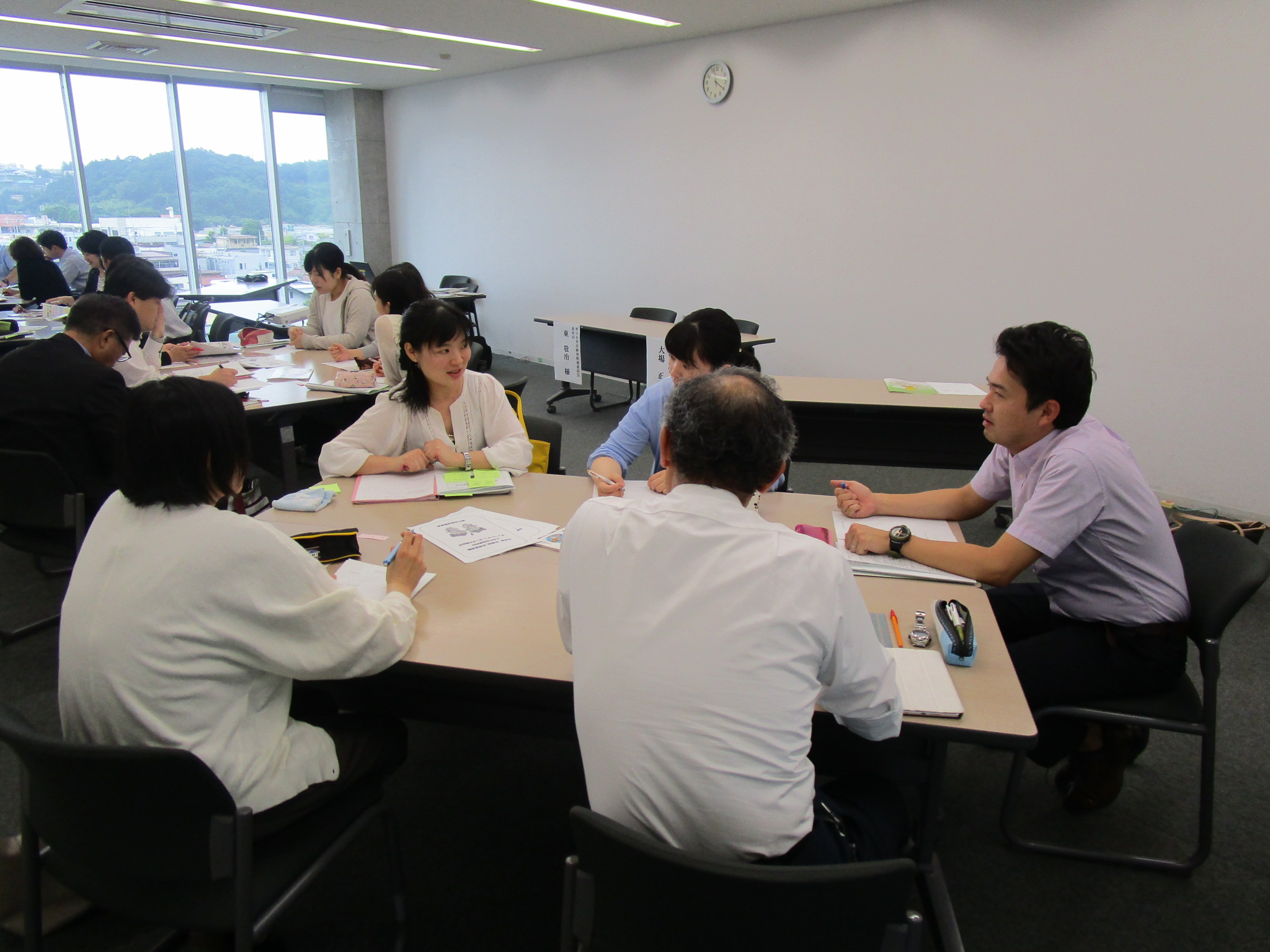 第1回の推進委員会ということで、新学習指導要領における改訂点のポイントや今後の課題、本年度準備をしておくべきこと等、今後の活動の指針となる情報を教育委員会から提供しました。参加された先生方は大変真剣に今後の英語教育について考え、積極的に自分の考えを発表していました。