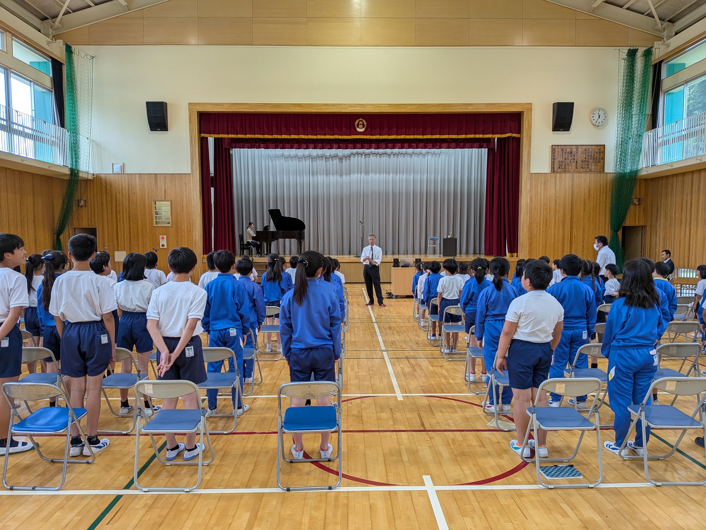 本日は大田小学校の音楽集会に参加しました。特別講師として、埼玉県出身のバリトン歌手、富田千種さんにお越しいただきました。富田さんは、第75回全国植樹祭で国家独唱をされました。普段はオーストリアのウィーンに住んでいるそうで、来週帰国されるとのこと。太田地域に親戚がいたご縁で、今回の音楽集会が実現しました。