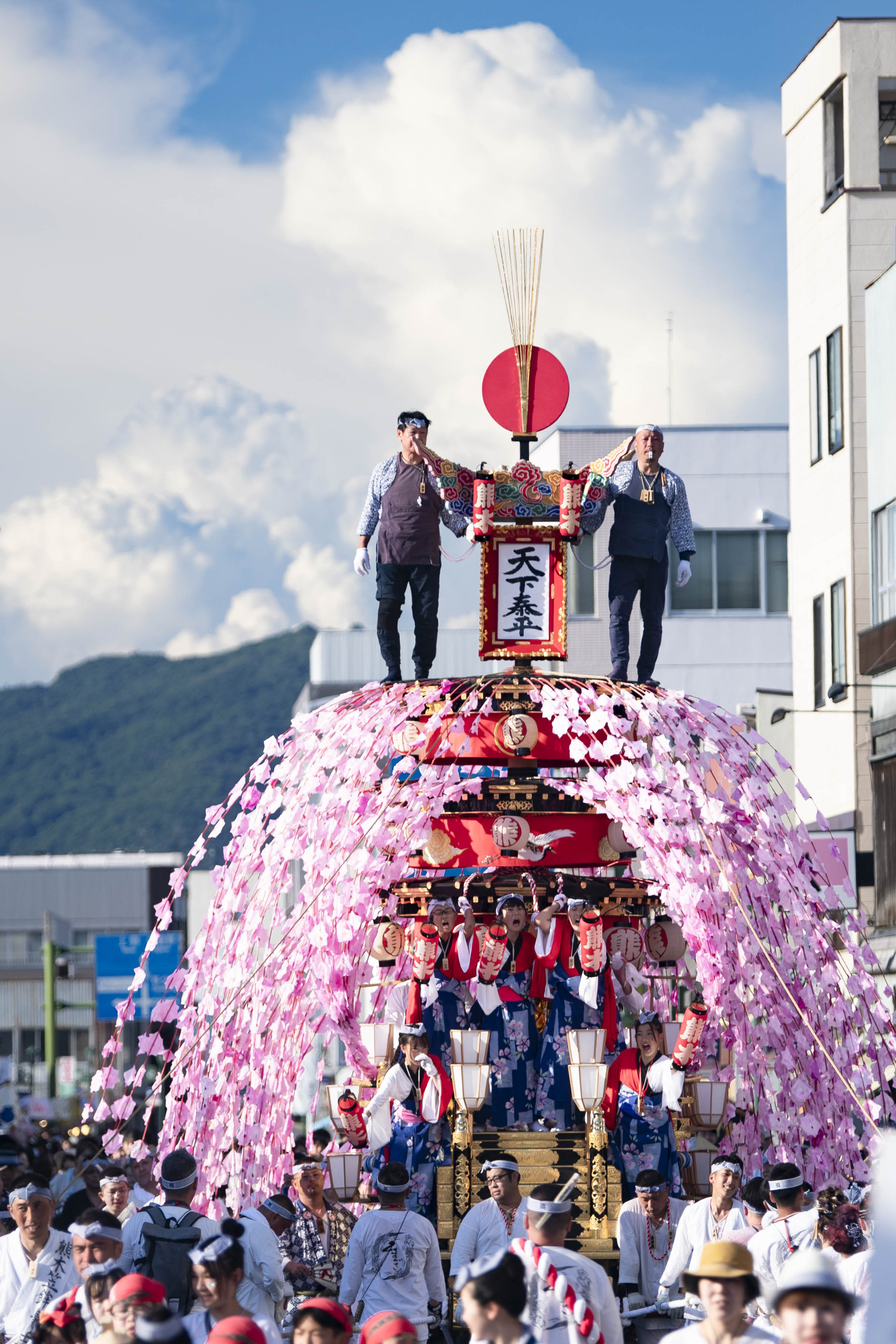祭りの人出は、19日が39,000人、20日が62,000人、合計で101,000人となり、令和6年の94,000人と比べて7,000人の増加となりました。川瀬祭の主役である子どもたちは、厳しい暑さの中でも元気に囃子手や拍子木、曳き子を務めていました。