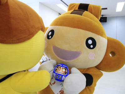 陸前高田市ゆめ大使「たかたのゆめちゃん」としんじょう君。ふたりとも衣装がカワエエネェ(^^♪